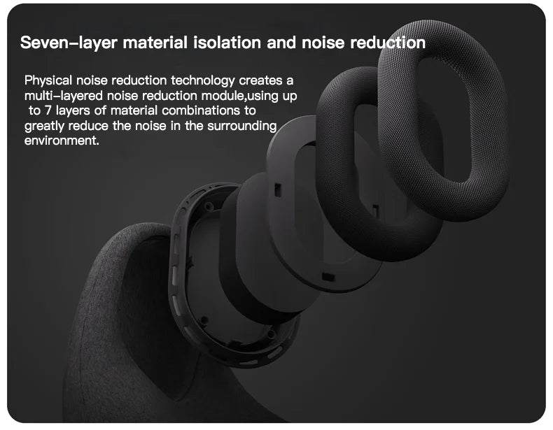 - 7 layer material isolation and noise cancellation : Physical noise reduction technology creates a multiple layered noise reduction module, using up to 7 layers of material combinations to greatly reduce the noise in surrounding environment.